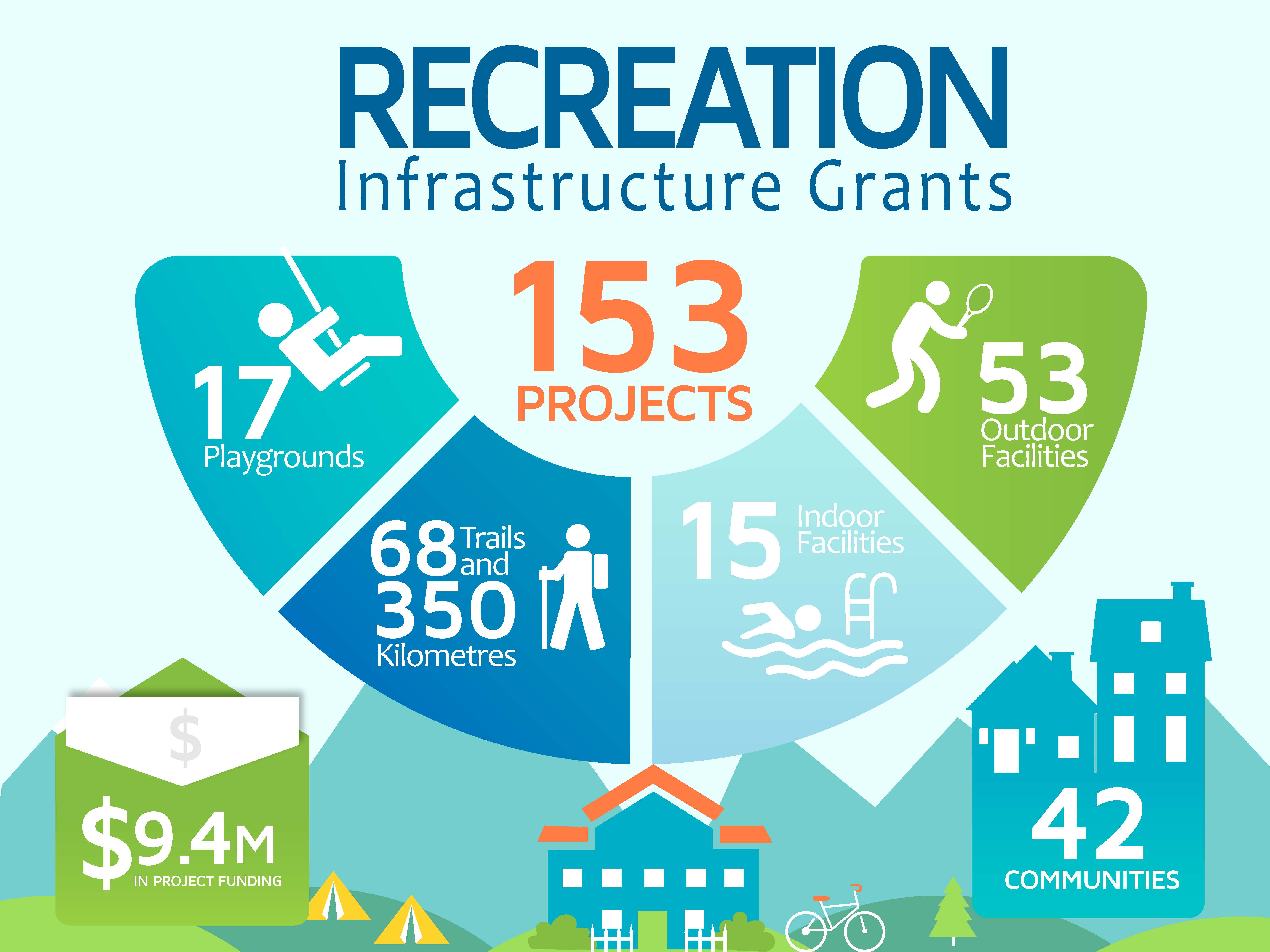 The Recreation Infrastructure Grants program provided funds to construct new recreation infrastructure or upgrade existing infrastructure. This ranged from backcountry trail networks, to splash parks, to disc golf courses.